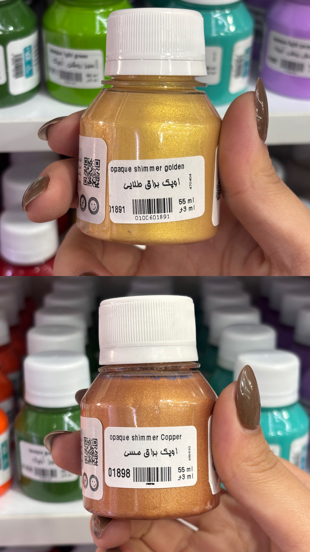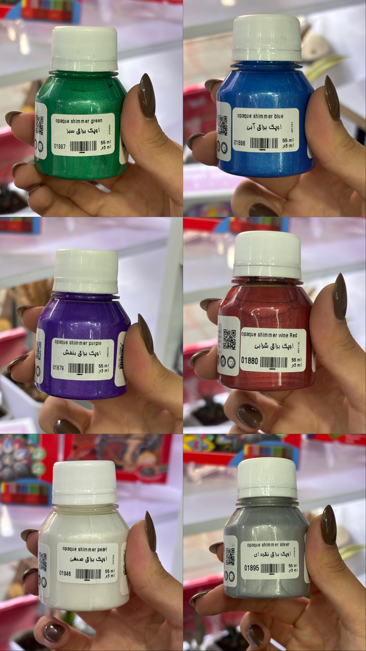 ●این رنگها دارای ذرات ریز درخشنده هستند که جذابیت بصری خاصی ایجاد می نمایند. رنگ شیمر (درخشنده) پارچه سوداکو پس از اجرا و تثبیت نهایی روی پارچه، قابل شستشو میباشند. ●ابتدا طرح مورد نظر را با استفاده از کاربن ، خودکار حرارتی ، مداد و .... روی پارچه انتقال داده، سپس رنگ آمیزی کنید. برای تثبیت بهتر میتوانید ۷۲ ساعت پس از اجرا پارچه را از پشت بدون بخار، اتو کنید.